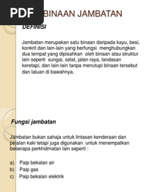 Faktor Pemilihan Reka Bentuk Reka Cipta 4 MESRA PENGGUNA 2013 20 21 Fungsi menguntungkan memudahkan pengguna Bekas makanan bertingkat boleh memanaskan pelbagai jenis makanan dalam satu masa Kendalian suhu automatik boleh laraskawal suhu mengikut kesesuaian makanan Mudah digunakan dan dibawa tanpa memerlukan sumber. Pembinaan Jambatan Kaedah -kaedah pembinaan bagi pelbagai jenis jambatan. Secara amnnya jambatan boleh dikelaskan kepada tiga kumpulan.