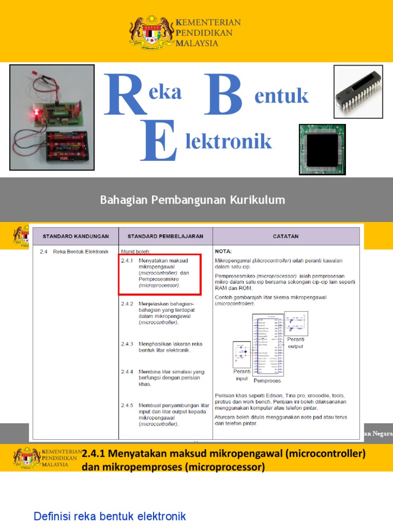 Reka Bentuk dan Teknologi RBT Gradelevel. Maksud Reka Bentuk Mekatronik. 241 Menyatakan maksud pengawal mikro microcontroller dan pemproses mikro microprocessor 24.