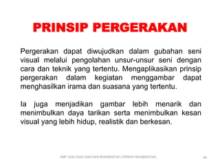 Misalnya penggunaan warna yang dominan dalam reka bentuk kad jemputan dan juga papan iklan. Murid perlu mahir dengan kesemua prinsip reka bentuk tersebut untuk.