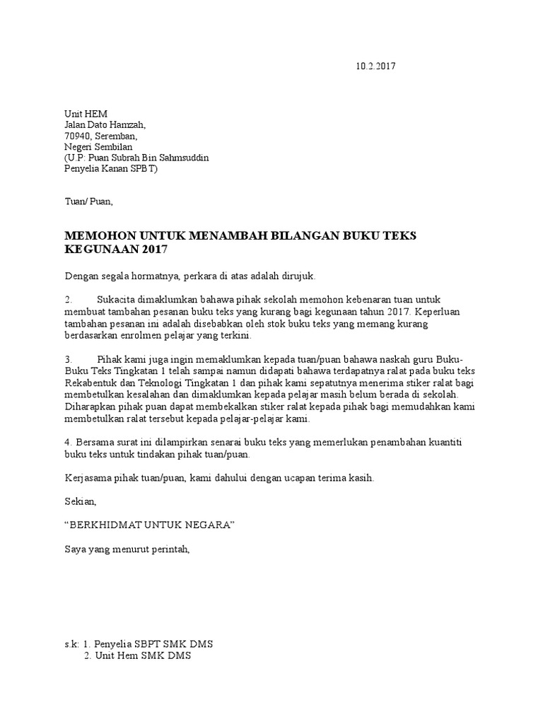 Beberapa jenis surat permohonan resmi diantaranya adalah surat permohonan bantuan permohonan maaf permohonan magang permohonan kerjasama permohonan dana dan lain sebagainya. Contoh Surat Buka Akaun Simpanan Untuk Pekerja. 2 Pada asasnya format penulisan surat rasmi UTM adalah sama dengan format surat rasmi kerajaan kecuali dengan sedikit penambahbaikan seperti berikut.