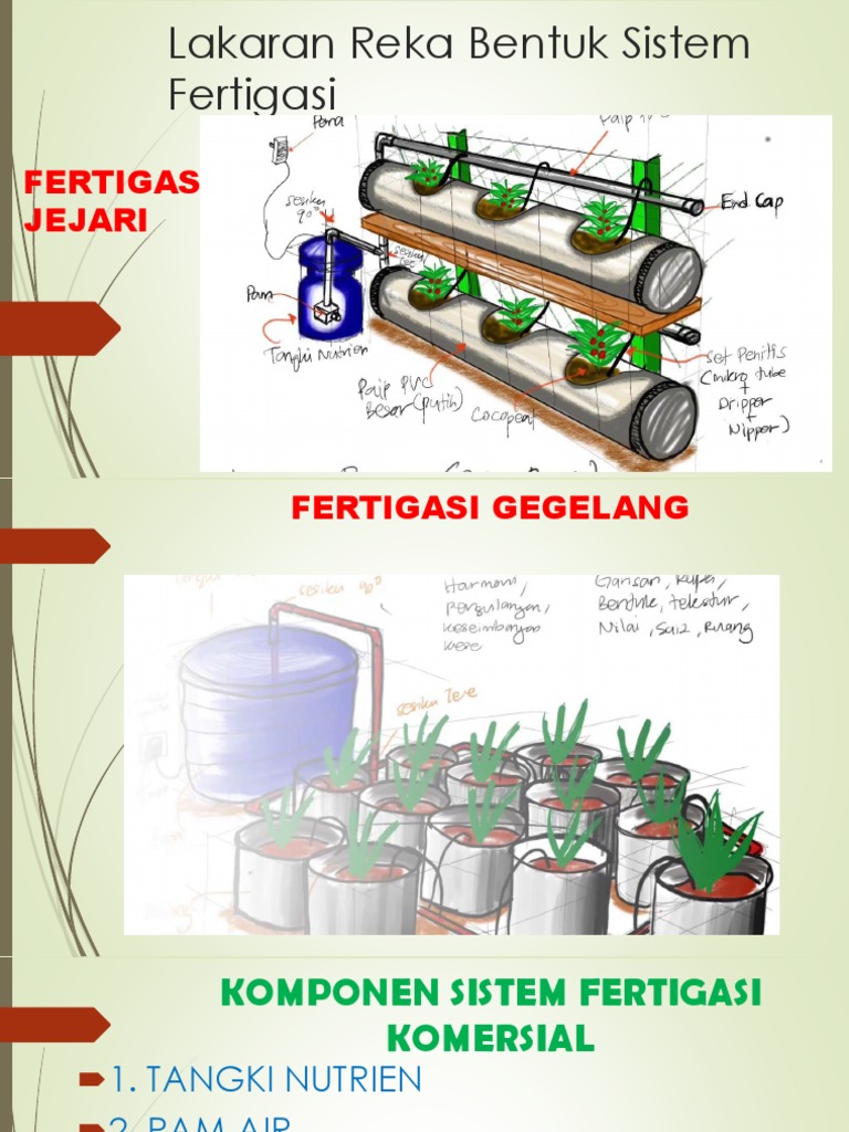 Fertigasi reka bentuk. 514 Analisis elemen reka bentuk dalam sistem fertigasi 515 Penilaian lakaran reka bentuk sistem fertigasi 300821 Isnin Elemen Reka Bentuk Elemen Reka Bentuk 7 Elemen. Reka Bentuk Sistem Fertigasi Definisi Sistem pengairan fertigasi Reka bentuk sistem fertigasi merupakan inovasi dalam teknologi pertanian. Lakaran reka bentuk sistem fertigasi yang dapat menunjukkan kesan rasa dan ekspresi terhadap sesuatu Tekstur objek yang dilakar.