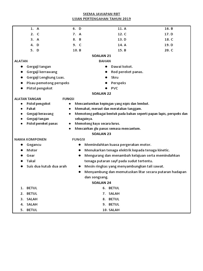 Ini merupakan hasil kerja keras para guru dari seluruh Malaysia yang dikongsikan di internet sama ada melalui facebook atau mana-mana media sosial yang lain. 5 _____ Yang berikut adalah sebab jadual tugas dibina. Soalan Peperiksaan Percubaan Reka Bentuk dan Teknologi RBT PT3 2019 Skema Jawapan.